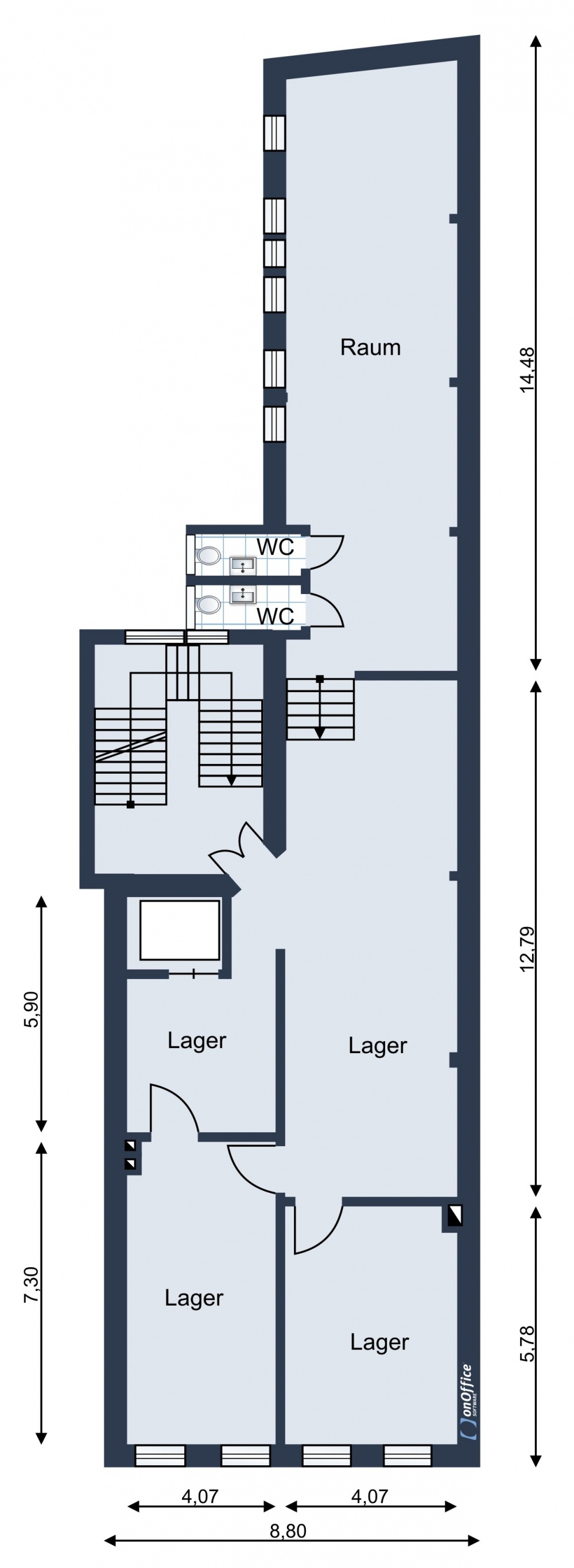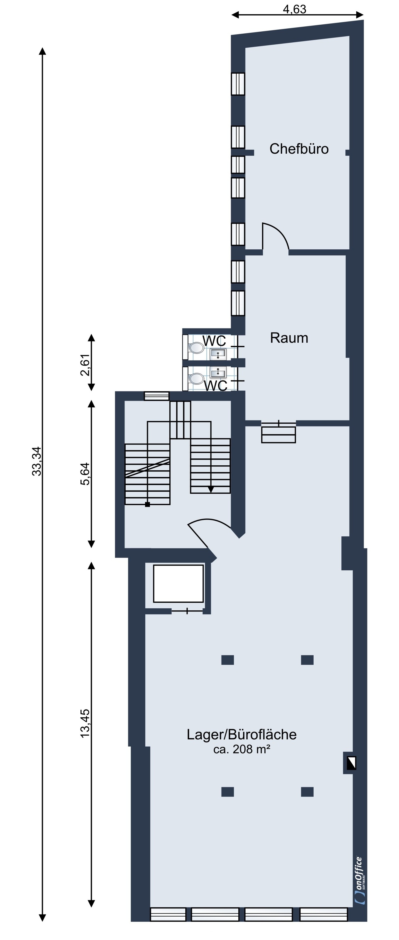 OG: Büro, Lager- und Aufenthalträume mit ca. 208m² Grundfläche