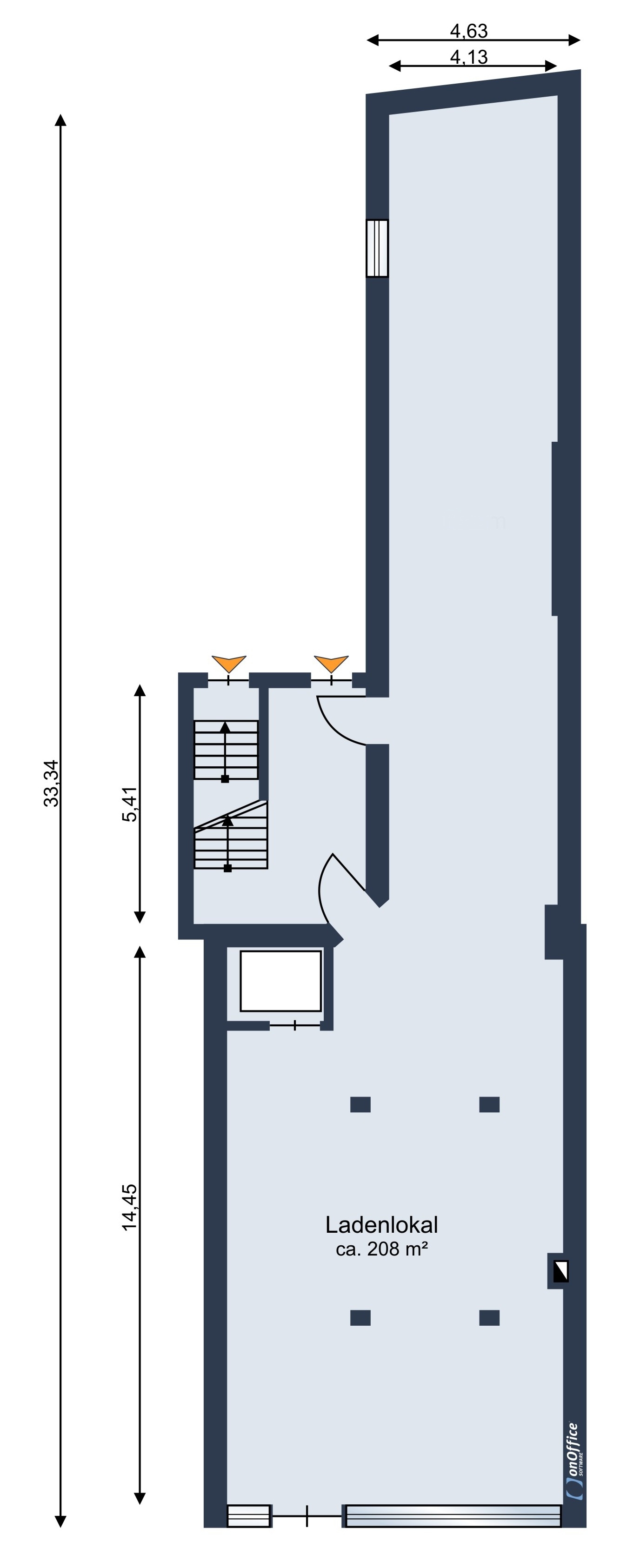 EG: Ladenlokal mit ca. 208m² Verkaufsfläche und ca. 5m Schaufensterfront