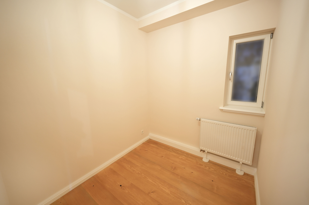Auch die privaten Räume lassen keine Wünsche offen: Das Schlafzimmer mit angrenzender Ankleide ist mit edlem Stäbchenparkett aus Eiche ausgestattet und schafft eine behagliche Rückzugsoase. Ein weiteres Zimmer kann flexibel als Gäste-, Kinder- oder Arbeitszimmer genutzt werden. Zwei Bäder, jeweils modern und hochwertig ausgestattet, integrieren sich geschmackvoll und passend in das historische Gebäude und bieten höchsten Komfort – eines mit Dusche und WC, das andere mit Badewanne und WC. Ergänzt wird das Raumangebot durch einen praktischen Hauswirtschaftsraum. Hochwertige Echtholzböden in den übrigen Wohnbereichen unterstreichen den exklusiven Charakter der Wohnung.