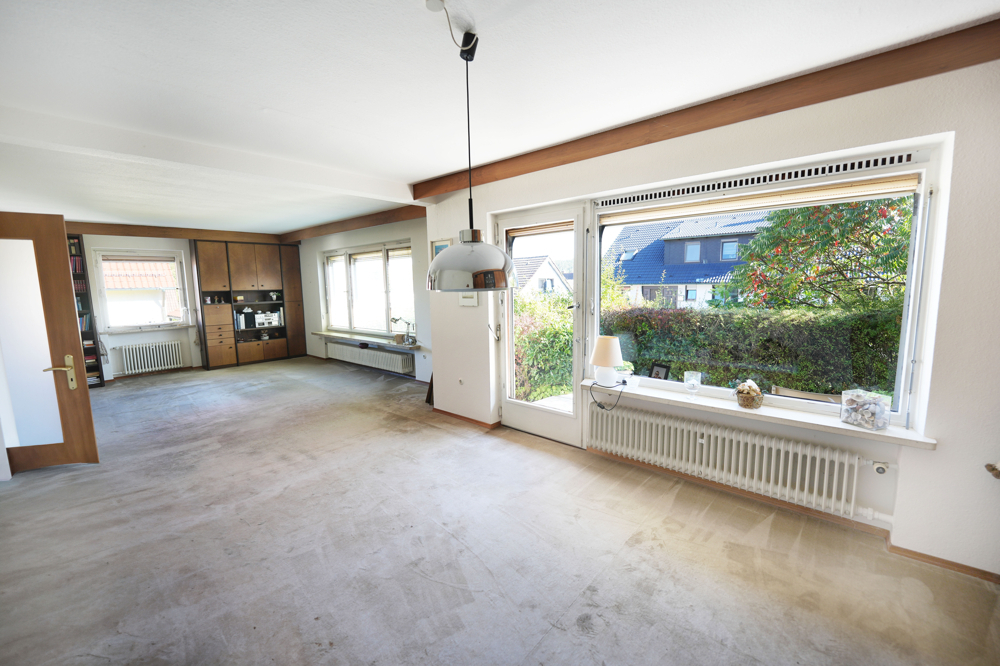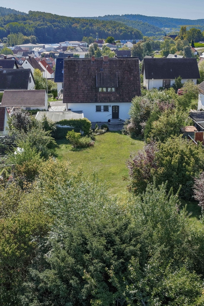 Zurück zu ÜbersichtIn einer ruhigen Nebenstraße von Weitramsdorf steht dieses Wohnhaus aus dem Jahr 1961. Die Wohnfläche von rund 135 m² verteilt sich auf eine klassische Aufteilung mit drei Schlafzimmern, Küche, Bad, Diele sowie einem großen Wohn- und Essbereich. Der Wohn-/Essbereich war ursprünglich in zwei Räume unterteilt und kann bei Bedarf wieder entsprechend abgetrennt werden, so dass bis zu fünf Zimmer zur Verfügung stehen.