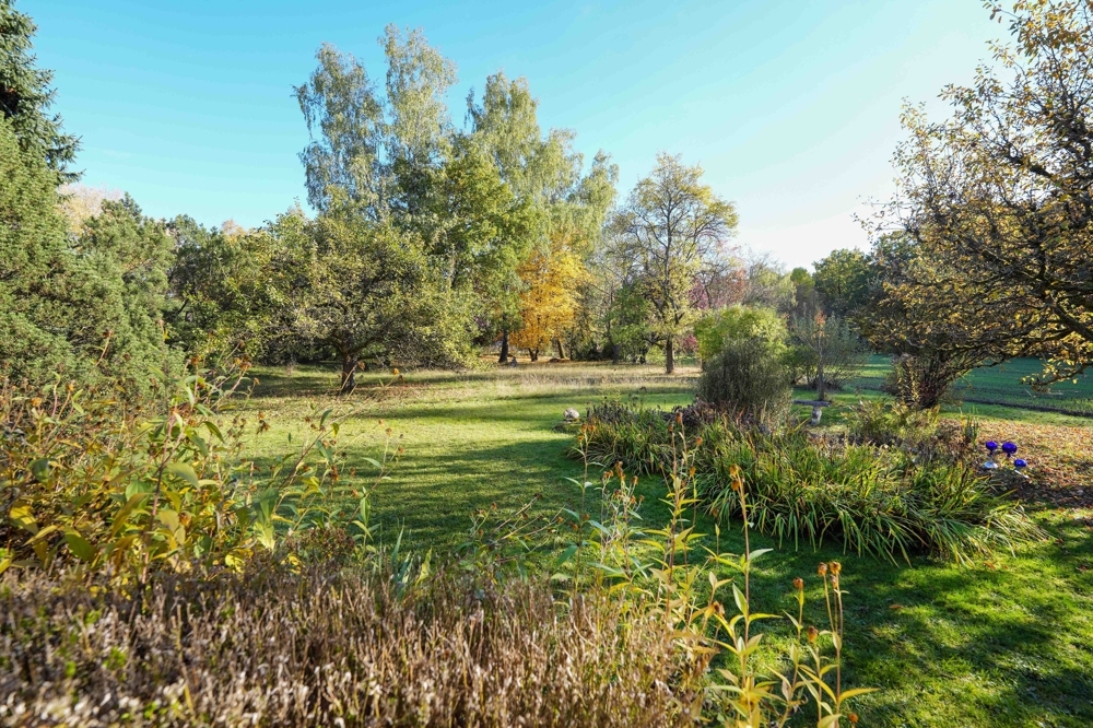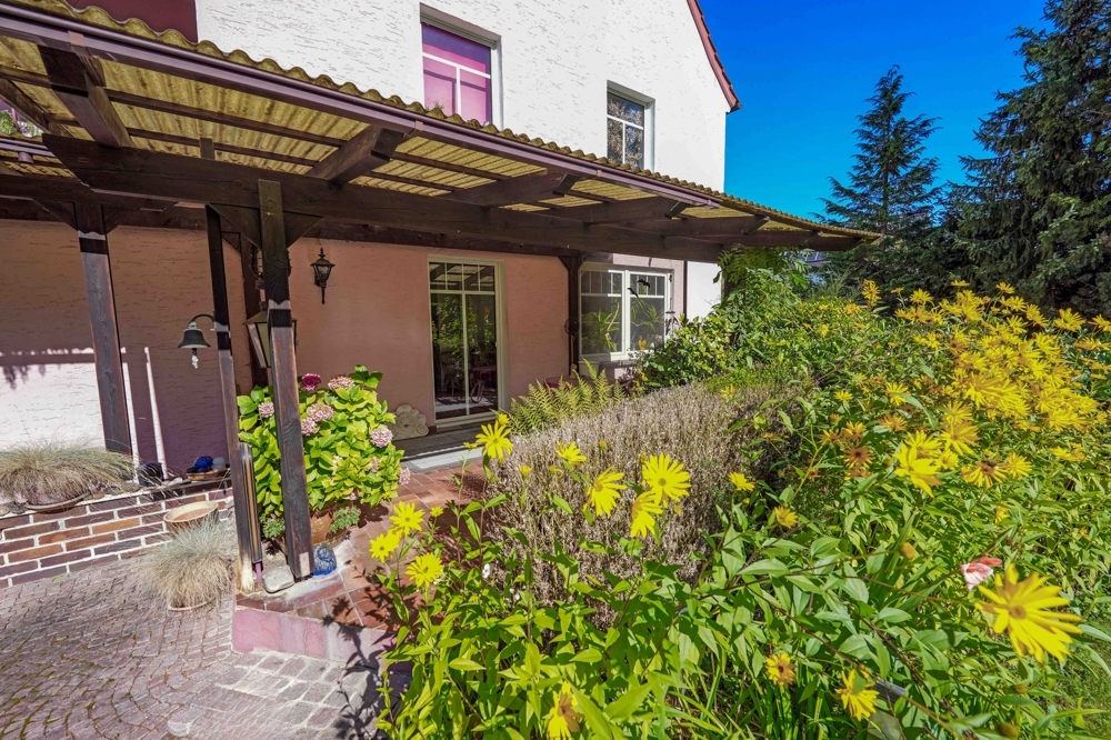 Im Erdgeschoss befinden sich die klassischen Räume eines Einfamilienhauses: ein offenes Wohn- und Esszimmer, eine separate Küche mit kleiner Speisekammer, ein kleines Duschbad, ein separates Gäste-WC, ein praktischer Abstellraum sowie ein großzügiger, überdachter Freisitz, der in den wunderschön eingewachsenen Garten übergeht. Die Räume in den Obergeschossen bieten viel Potenzial, um sie nach eigenen Vorstellungen zu gestalten. Das 1. Obergeschoss verfügt aktuell über drei unterschiedlich große Räume, eine weitere Küche sowie einen überdachten Balkon. Hier könnten zum Beispiel drei Schlafzimmer, ein Büro sowie ein modernes Bad entstehen. Im Dachgeschoss befinden sich vier weitere Räume zur vielfältigen Nutzung. Das Haus ist voll unterkellert. Die Gaszentralheizung von 1973 wurde 2007 mit einem neuen Brenner versehen. Erweitert wird das Objekt durch ein solides Nebengebäude, in dem sich unter anderem zwei Garagen befinden. Im Hofbereich befinden sich Abstellmöglichkeiten für mehrere Fahreuge.