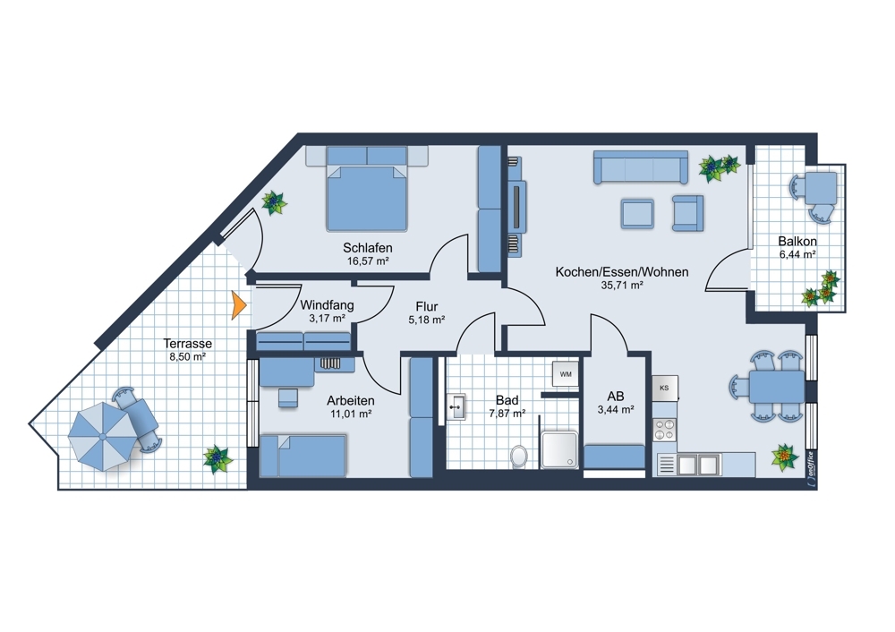 Diese Wohnung ist ideal für ein bis zwei Personen, die Wert auf Ruhe, Komfort und eine zentrale Lage legen. Einkaufsmöglichkeiten, die Innenstadt sowie der Hofgarten befinden sich in unmittelbarer Nähe.