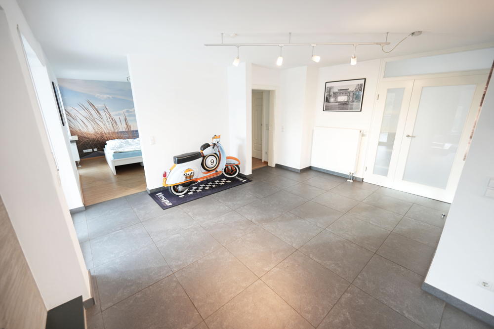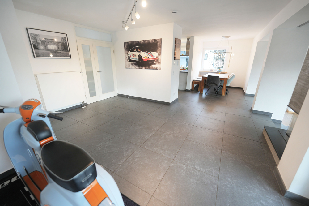Die Hauptwohnung erstreckt sich über drei Ebenen: Im Erdgeschoss stehen 5 Zimmer, Küche, Diele und Bad zur Verfügung. Das Dachgeschoss wurde 2020 aufwendig zu zwei großzügigen Studiozimmern mit einem schönen Bad ausgebaut und 2025 um eine moderne Küche ergänzt. Im Gartengeschoss befindet sich ein weiteres vollwertiges Zimmer mit eigenem Bad – ideal für Gäste, ein älteres Kind oder ein ruhiges Homeoffice. Die Zwei-Zimmer-Einliegerwohnung mit Küche, Bad und Balkon verfügt über einen separaten Zugang und eröffnet zusätzliche Nutzungsmöglichkeiten.