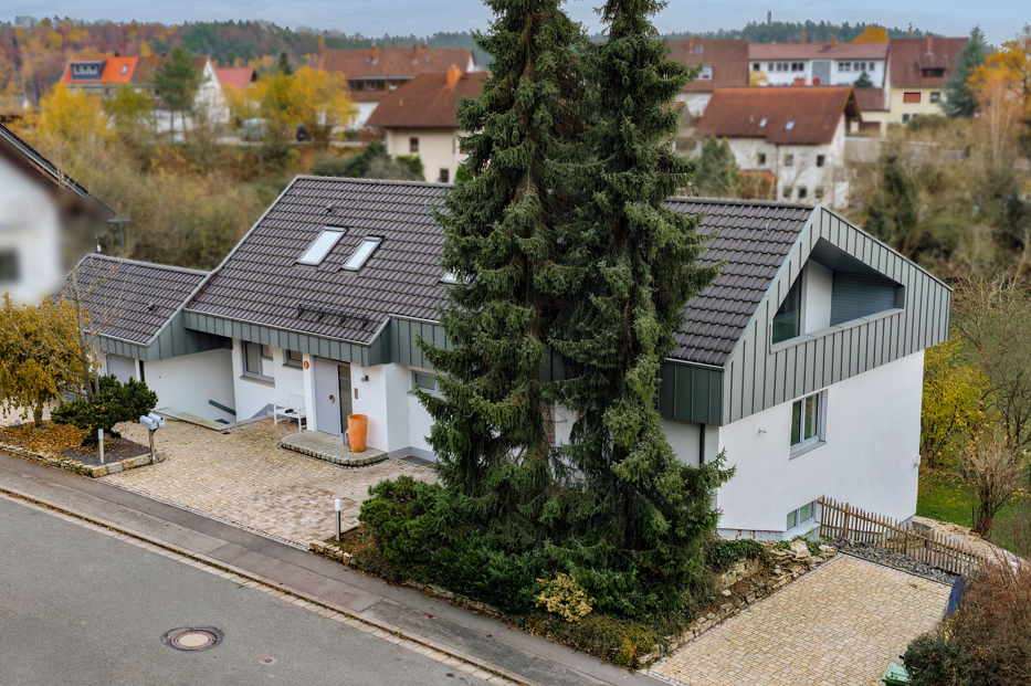 Das Haus befindet sich in Weitramsdorf, einer beliebten Gemeinde westlich von Coburg. Der Ort bietet eine ausgewogene Mischung aus ruhiger Wohnlage und einer guten Infrastruktur: Einkaufsmöglichkeiten, Kindergarten, Grundschule sowie Ärzte sind gut erreichbar und sorgen für kurze Wege im täglichen Leben. Das Haus selbst befindet sich in ruhiger, zentrumsnaher Lage, verfügt aber dennoch über einen schönen Fernblick.