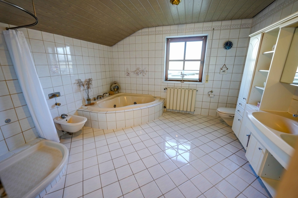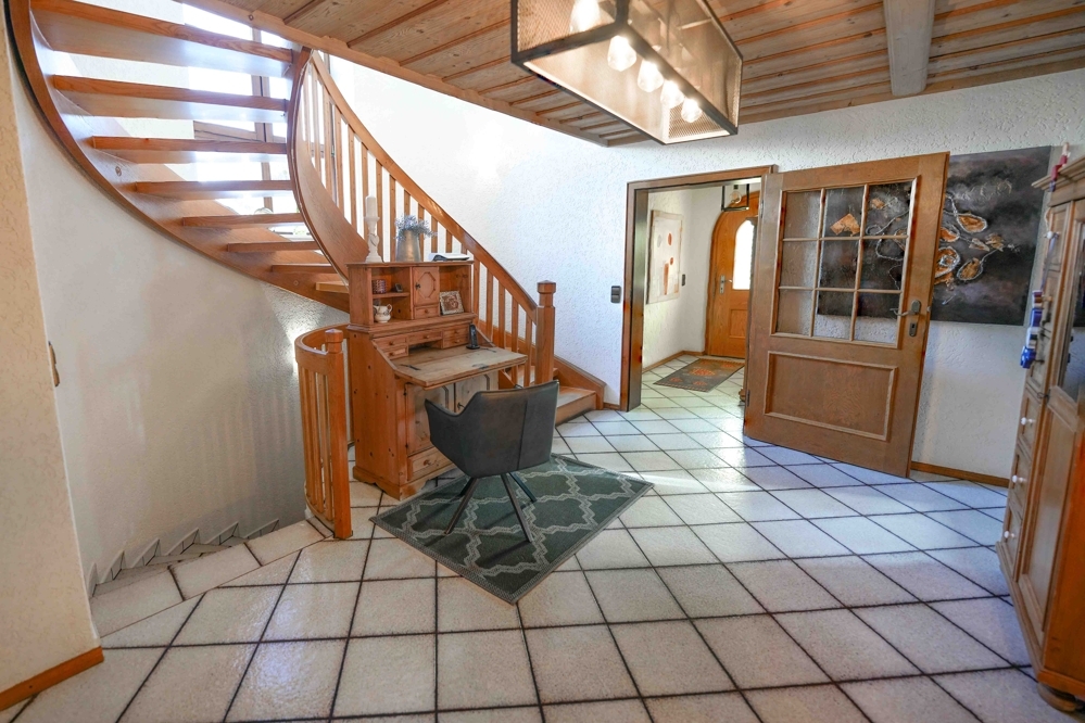 Das Haus ist voll unterkellert und wird durch eine große Doppelgarage mit teil-ausgebautem Dachboden ideal ergänzt. Die Immobilie wurde laufend instand gehalten und präsentiert sich insgesamt in einem guten, sehr gepflegten Zustand.