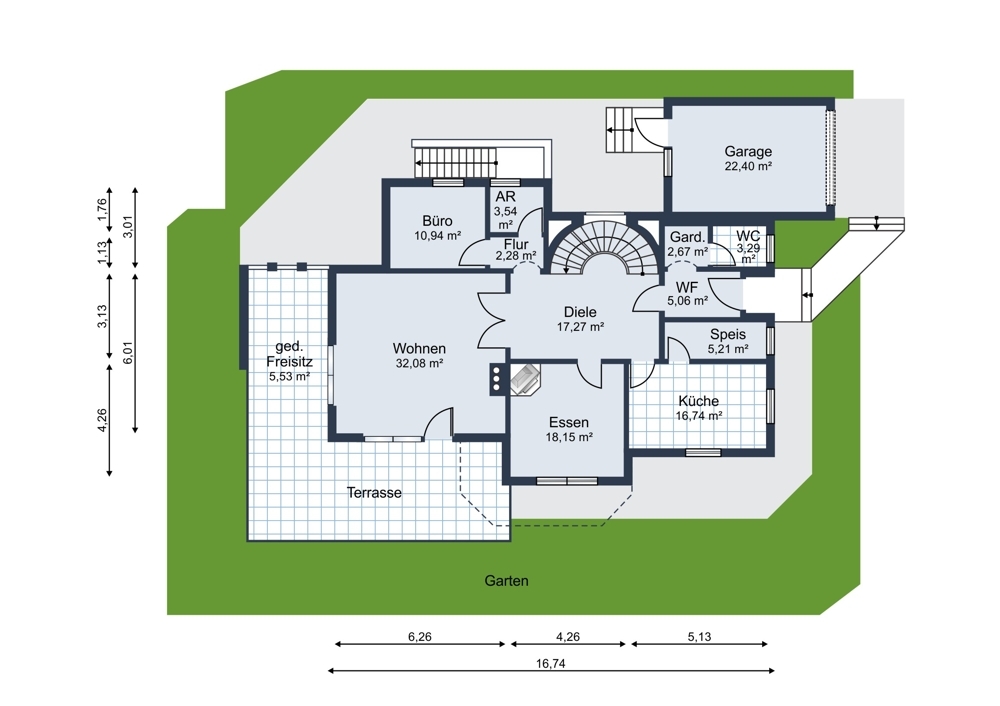 - Wohnfläche ca. 212 m² (nach Schließung des Luftraums über dem Wohnzimmer 1996 sind effektiv über 220 m² nutzbar)
