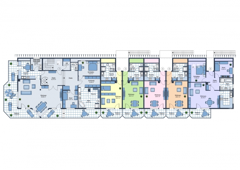 - Alle Wohnungen befinden sich in gutem bis sehr gutem Zustand.