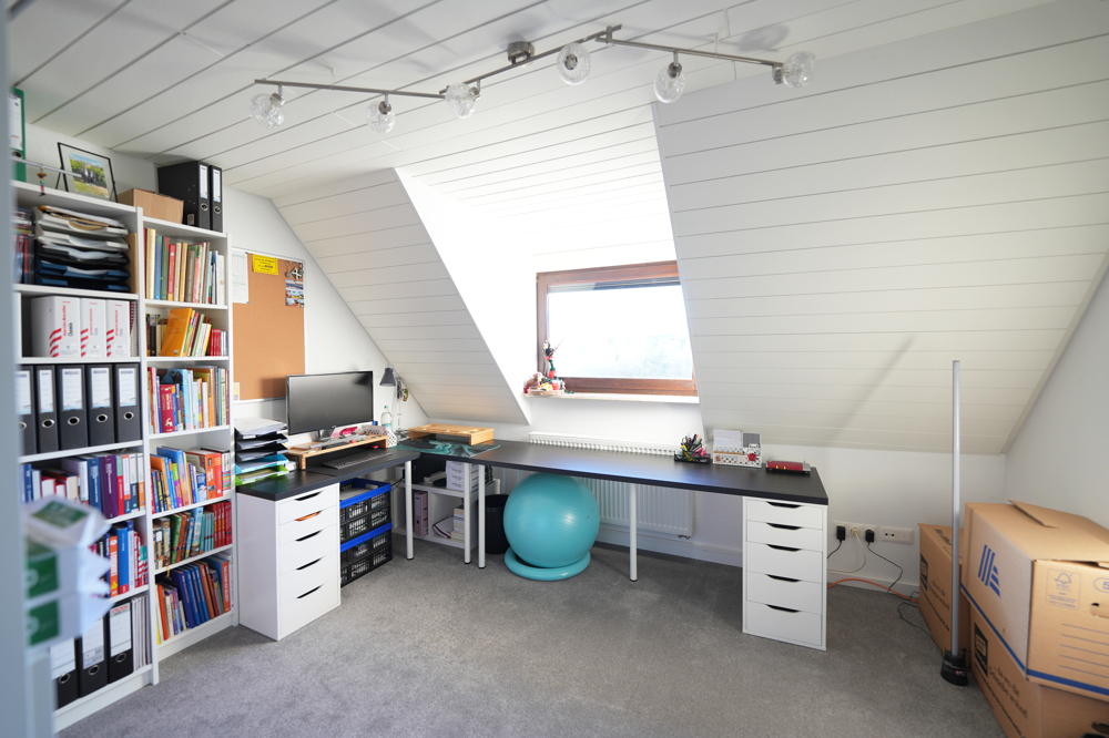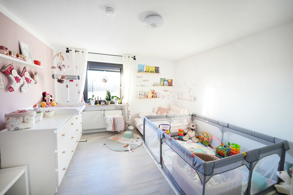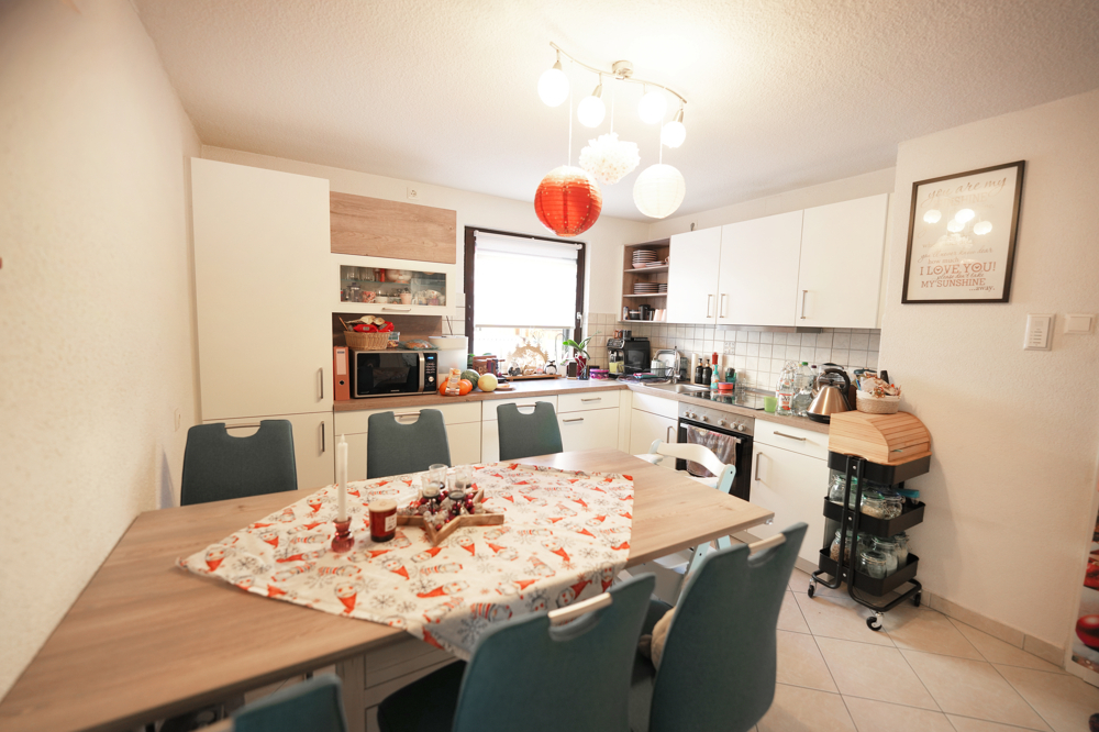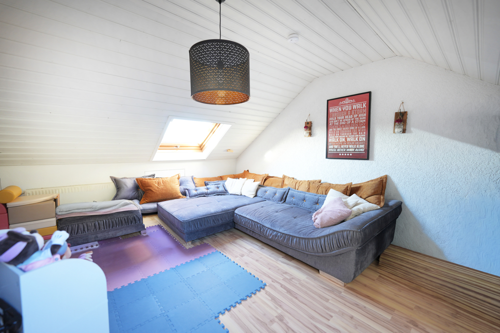 Zurück zu ÜbersichtDie gemütliche und helle Maisonette-Wohnung befindet sich im 1.Obergeschoss sowie im Dachgeschoss eines 2-Familien-Wohnhaus und wurde 2019 renoviert. Auf großzügigen ca.104 m² befinden sich im Obergeschoss ein Schlafzimmer, ein Kinderzimmer, ein Wohnzimmer mit Schwedenofen, eine moderne Einbauküche sowie ein Tageslichtbad mit Duschwanne. Dazu kommen- über das Treppenhaus erreichbar- 2 Zimmer im Dachgeschoss, ein weiteres kleines Duschbad mit WC sowie 2 kleine Abstellräume. Ein großer Kellerraum rundet das Wohnangebot ab. Zusätzlich steht beiden Mietparteien im Keller ein Waschraum, ein Partyraum sowie ein kleines Duschbad mit WC zur gemeinschaftlichen Nutzung zur Verfügung.