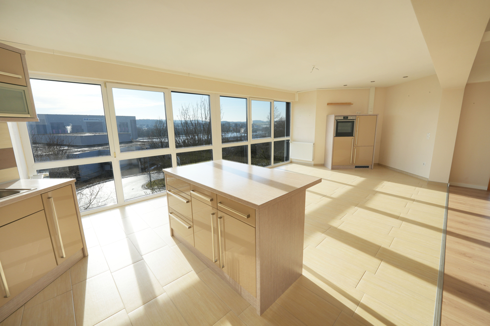 Zurück zu ÜbersichtIn zentraler Wohnlage von Rödental befindet sich diese großzügig geschnittene, lichtdurchflutete Eigentumswohnung im Loftstil. Die ehemaligen Büroräume erstrecken sich auf einer Fläche von rund 150 m² über das gesamte zweite OG. Sie wurden 2013 in Wohnraum umgewandelt und aufwendig aus- und umgebaut. Sie verfügen heute über ein ca. 75 m² großes Wohnzimmer mit offener Küche sowie 4 weitere Räume und ein großzügig geschnittenes Tageslichtbad mit Wanne und Dusche. Über das Treppenhaus erreicht man in wenigen Schritten die ca. 25 m² große Dachterrasse, die sich im ersten OG befindet.