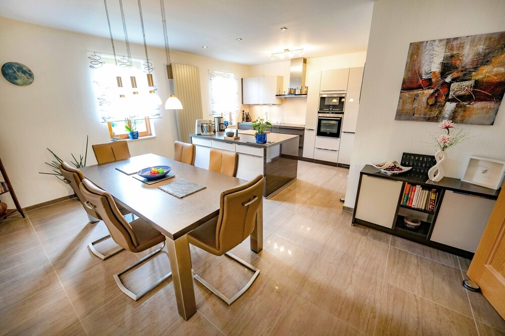 Im Erdgeschoss befindet sich eine Wohnung mit etwa 110 m² Wohnfläche, die über zwei Zimmer, Küche, Diele und Bad verfügt und umfassend saniert wurde. Im Obergeschoss steht eine zweite Wohnung mit fünf Zimmern, Küche, Diele und Bad auf ca. 166 m² zur Verfügung, die ebenfalls nach einer umfangreichen Sanierung in sehr gutem Zustand ist. In Dachgeschoss und Nebengebäuden bestehen zusätzliche Ausbaureserven, die vielfältige Nutzungsmöglichkeiten eröffnen.